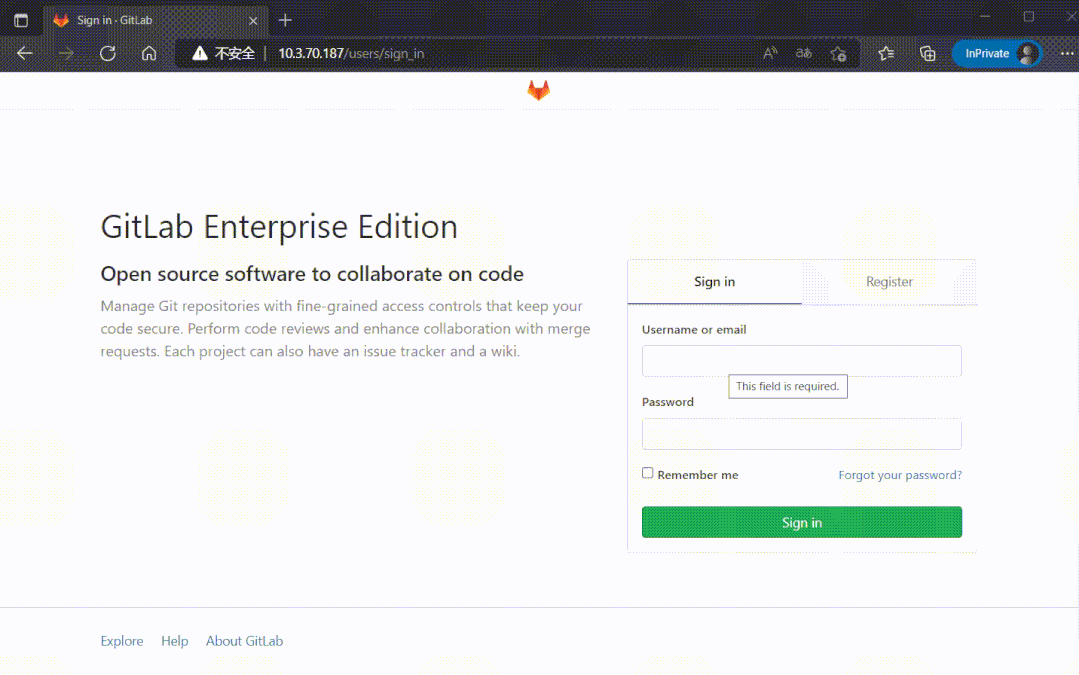 2、YugabyteDB v2.9不支持Gin Index(Generalized inverted indexes),导致创建一部分表后报错,同样无法启动,但是更新到最新版本v2.13后问题解决,可以正常访问GitLab页面以及注册用户。