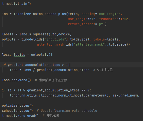 我们将数据分为两份,一份作为训练集,另一份作为验证集,设置每个batch加载8个记录,将预训练模型加载到显卡,按不同参数组配置不同的学习率,采用AdamW优化函数及线性学习率预热进行训练: