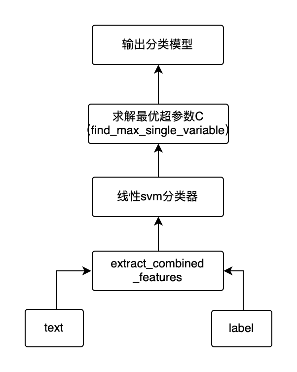 MitieIntentClassifier分类器使用MITIE进行意图分类,底层分类器使用的是具有稀疏线性核的多类线性支持向量机,MITIE是在dlib机器学习库之上开发的NLP工具包。其架构如下图: