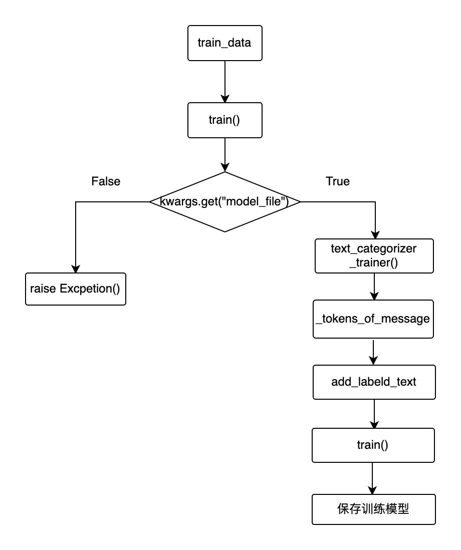 通过初始化trainer=rasa.nlu.model.Trainer(...),构建config.yml中pipeline下的所有组件。读取TrainingDataImporter中的nlu数据后,将数据输入trainer.train开始训练。