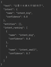 基于文本长度进行分类,设置不同的confidence,TextLen 小于 3时,intent_small为0.1,intent_big为0.2;TextLen 大于等3小于5时,intent_small为0.58,intent_big为0.6;TextLen大于5时,intent_small为0.7,intent_big为0.8。